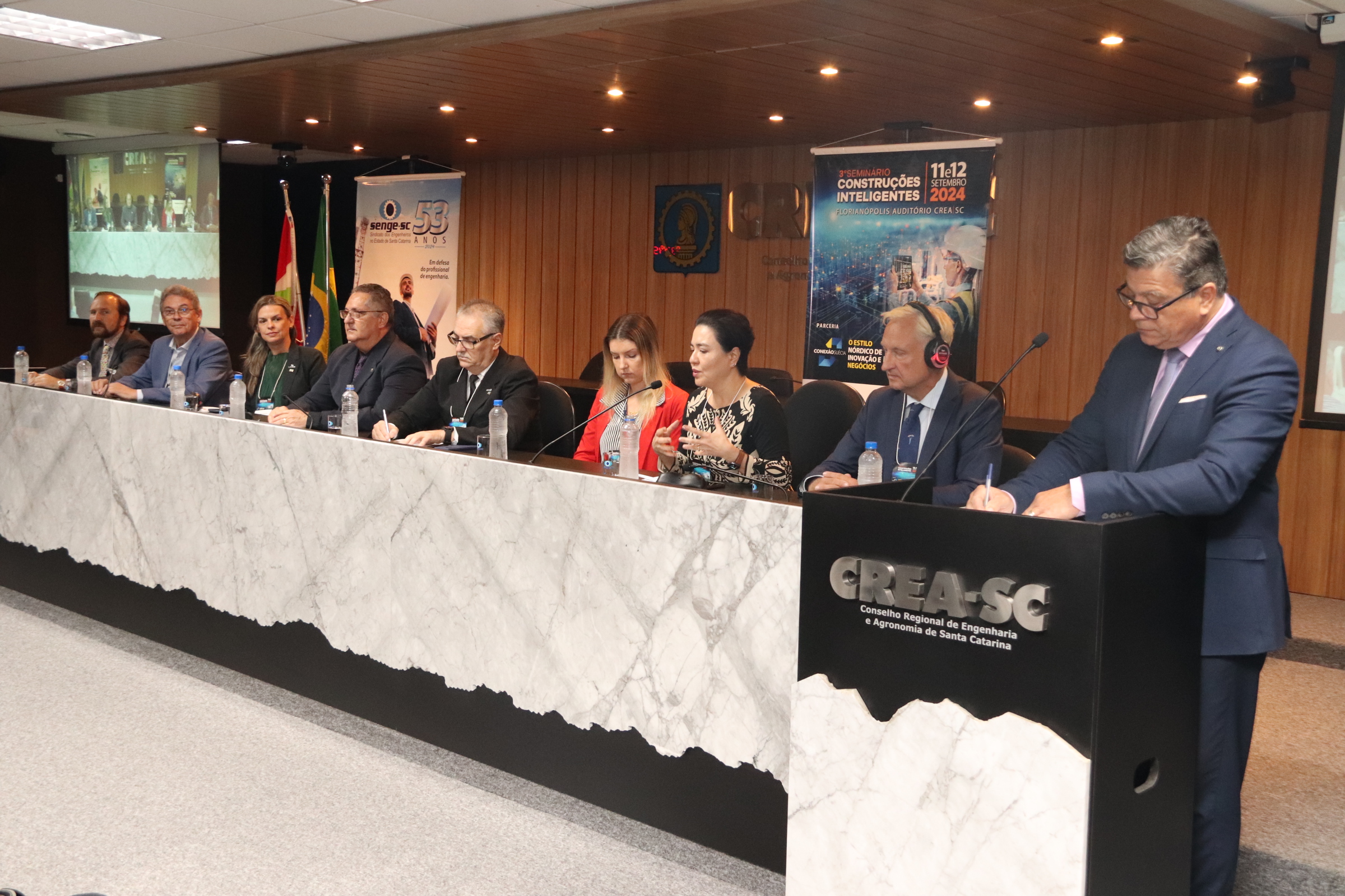 Para o presidente do CREA-SC, Eng. Kita Xavier, o Seminário Construções Inteligentes é uma oportunidade valiosa para o aprimoramento profissional e o intercâmbio de projetos. “Eventos como este são essenciais para acompanharmos as inovações tecnológicas e as melhores práticas internacionais. O intercâmbio de experiências enriquece o debate e nos oferece diretrizes para desenvolvermos soluções mais sustentáveis e inovadoras em Santa Catarina e no Brasil”, afirma Kita Xavier.