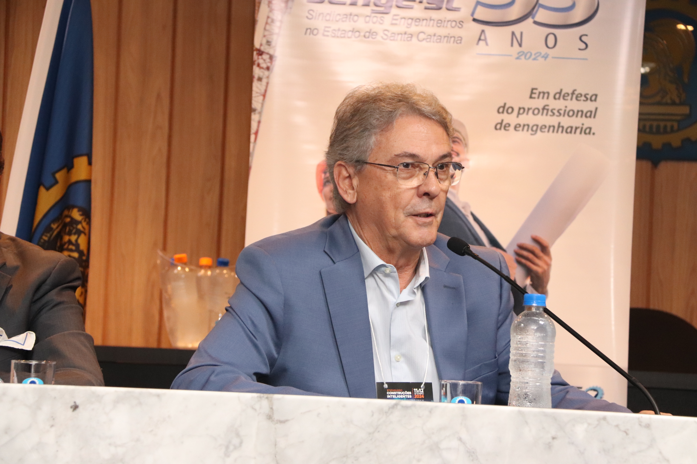O presidente do SENGE, Eng. Carlos Abraham, ressaltou o protagonismo do SENGE em seus 53 anos de história na representatividade e defesa das profissões. Ele afirmou que o planejamento da entidade sempre teve como meta a reciclagem tecnológica. Abraham também mencionou a participação do SENGE no Conselho Metropolitano para o Desenvolvimento da Grande Florianópolis (COMDES), no Conselho Sustentável das Cidades e no Floripa Sustentável como exemplos de sua atuação na sociedade.