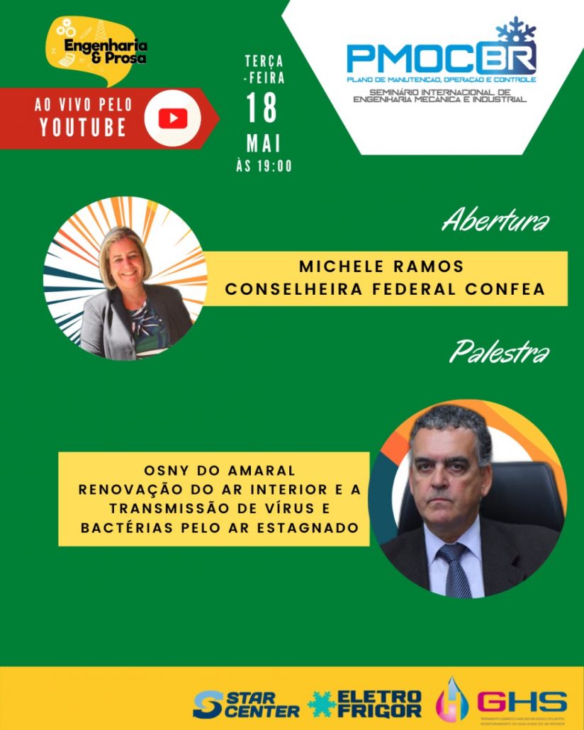 “Renovação do Ar Interior e a Transmissão de Vírus e Bactérias pelo Ar Estagnado” é o tema da próxima etapa do Seminário Internacional de Engenharia Mecânica e Industrial, do Programa PMOC-BR: Plano de Manutenção, Operação e Controle.