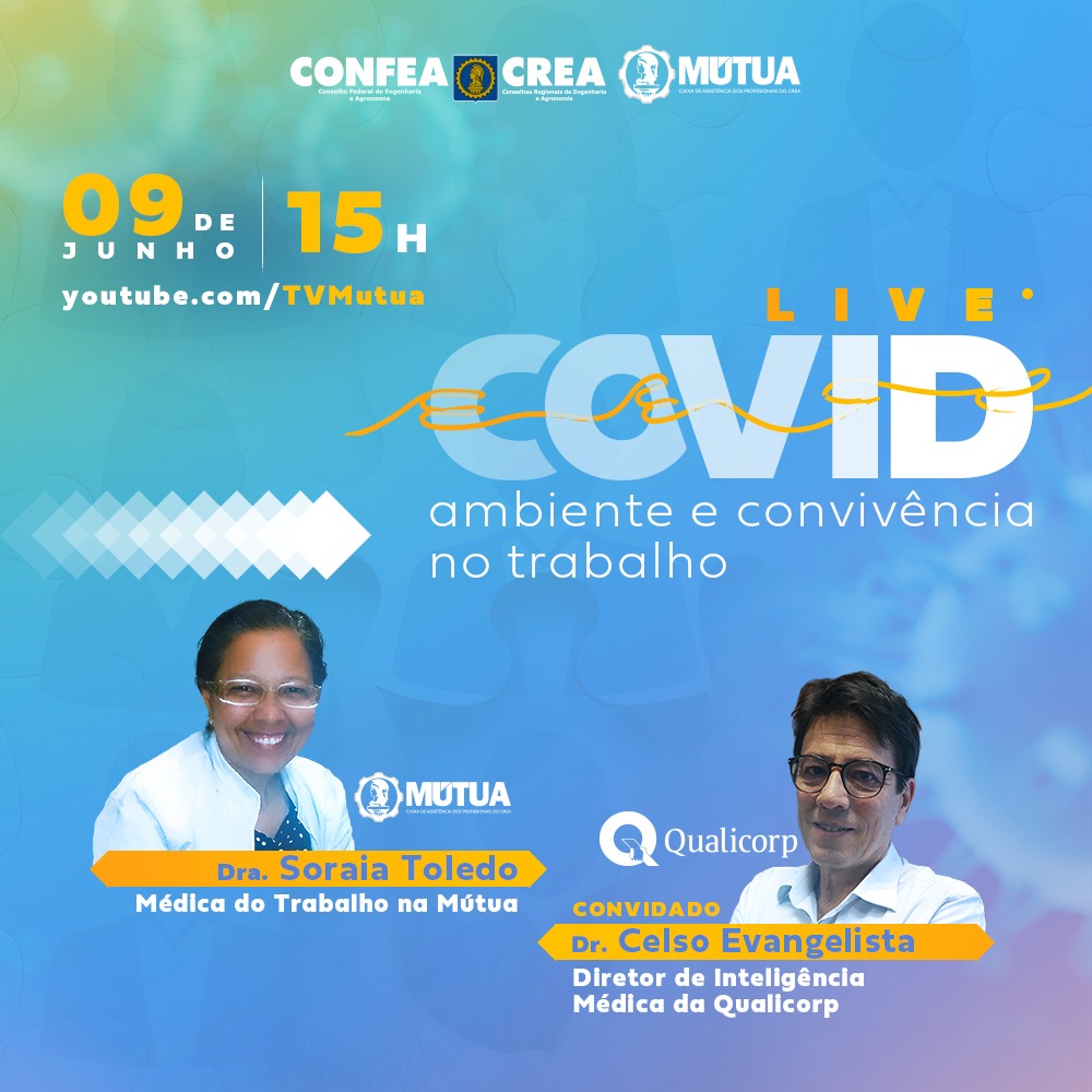 O Sistema Confea/Crea e Mútua realiza amanhã, dia 9 de maio, s 15h, uma LIVE no Youtube com o tema “COVID: ambiente e convivência no trabalho”. A LIVE é destinada aos líderes, gestores e colaboradores do Sistema, além de profissionais interessados.