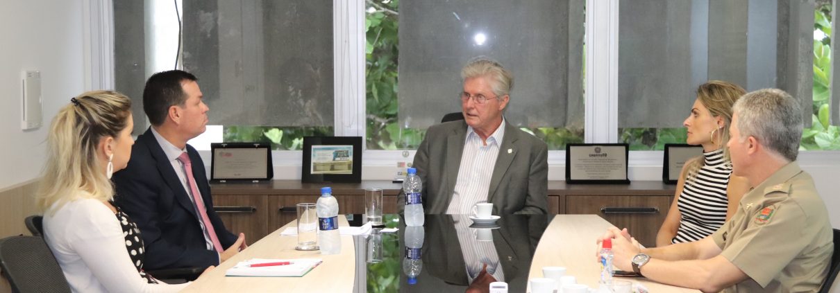 O Presidente do Tribunal de Contas do Estado, Adircélio de Moraes Ferreira Júnior e o Chefe de Gabinete, Cel. Ademar Casanova, estiveram essa tarde no CREA-SC para tratar sobre acordo de cooperação técnico-institucional para fiscalização de obras e serviços públicos, tanto na esfera municipal quanto estadual. O objetivo é reestabelecer o convênio existente com vistas à regularidade na execução dos projetos, orçamentos, obras ou prestações de serviços de engenharia, além de promover atividades de aperfeiçoamento e capacitação profissional. Participaram da reunião o presidente do Conselho, Eng. Agr. Ari Geraldo Neumann, a Assessora de Relações Institucionais, Eng. Civil Caroline Burtet e a Gerente do Departamento Financeiro, Cont. Dayse Vidal.
